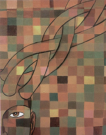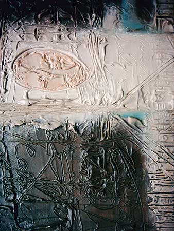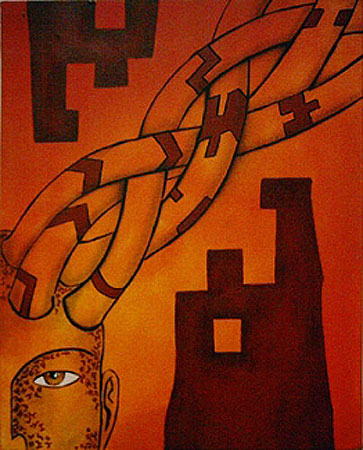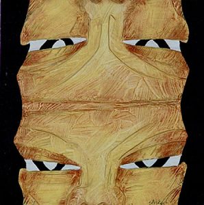 La obra de Alejandro Stock se despliega en un recorrido que combina pintura, escultura e instalación. Cada pieza es un fragmento de una investigación constante sobre la memoria, la identidad y la relación entre lo humano y lo simbólico.